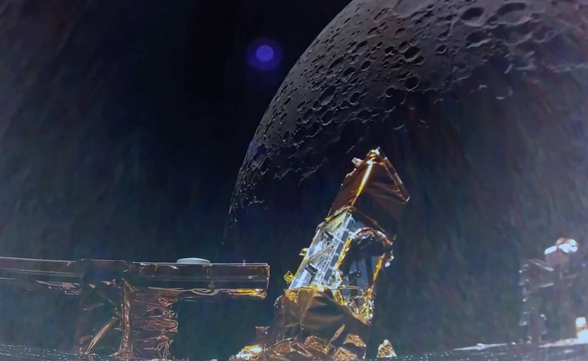 La inserción en órbita lunar completó con éxito una quema de inserción de cuatro minutos el 13 de febrero, la quema más larga y desafiante realizada hasta la fecha por el motor principal del módulo de aterrizaje y los propulsores del sistema de control de reacción.