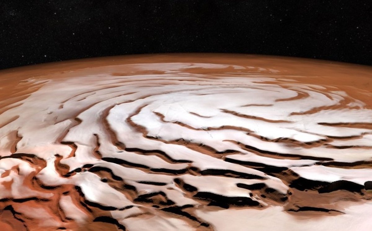 La capa de hielo de tres kilómetros de espesor que cubre el polo norte de Marte es joven, ya que se formó hace entre 2 y 12 millones de años, de acuerdo con una nueva investigación geofísica.