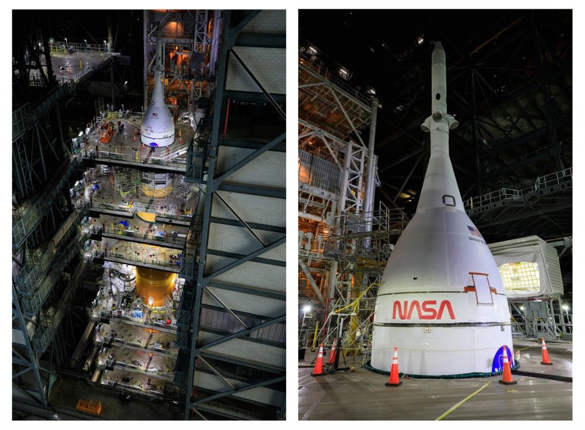 Los equipos continúan instalando instrumentación en los propulsores de cohetes sólidos gemelos del SLS dentro del VAB. Miles de sensores e instrumentos especiales monitorearán el cohete y la nave espacial cuando se desplieguen por primera vez el 17 de marzo y realicen el viaje de seis kilómetros hasta el Complejo de Lanzamiento 39B, llegando el 18 de marzo. El lanzamiento no será antes del 20 de marzo.