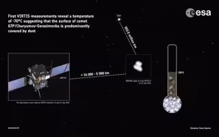 En estas distancias, el cometa ocupaba sólo unos pocos píxeles en el campo de vista, por lo que no fue posible determinar las temperaturas de características individuales. Pero, usando el sensor para captar la luz infrarroja emitida por todo el cometa, los científicos determinaron que la temperatura media de la superficie es de alrededor de -70 º C.
