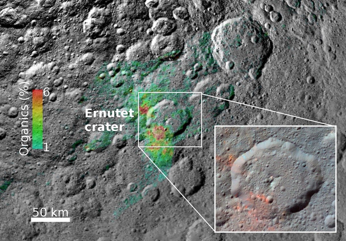"El descubrimiento de una concentración localmente alta de orgánicos cerca del cráter Ernutet plantea un acertijo interesante", dijo en un comunicado Simone Marchi, científica principal de SwRI, que ha presentado la nueva investigación en la 49ª División de Ciencias Planetarias de la Sociedad Astronómica Estadounidense. "¿Llegó el material orgánico a Ceres después de su formación? ¿O se sintetizó y/o se concentró en un lugar específico de Ceres a través de procesos internos? Ambos escenarios tienen deficiencias, por lo que podemos perder una pieza crítica del rompecabezas".