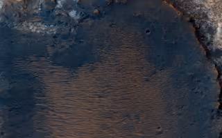 Esta imagen del Mars Reconnaissance Orbiter (MRO) de la NASA captura detalles de un cráter invertido de aproximadamente un kilómetro al oeste de Mawrth Vallis.