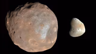 Deimos se compone de roca rica en carbono, muy similar a los asteroides de tipo C (condrita carbonácea), y de hielo. Posee cráteres, pero su superficie es notablemente más lisa que la de Fobos, debido al llenado parcial de sus cráteres con regolito, informa Wikipedia.