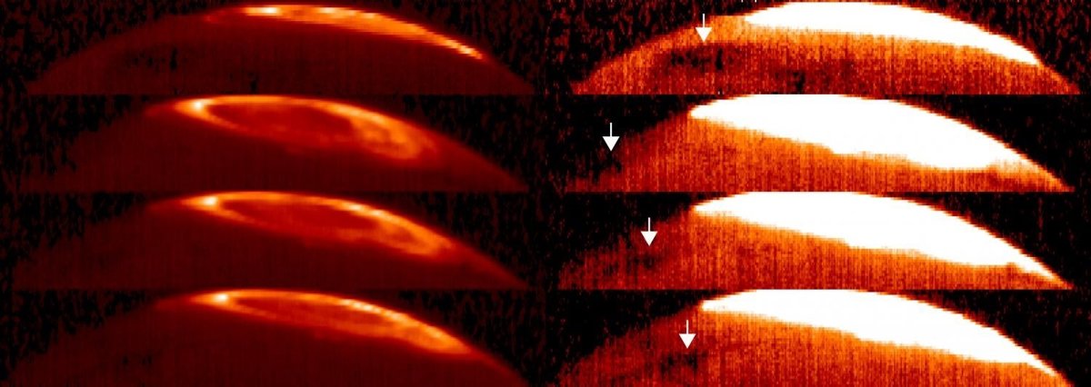 MADRID, 11 Abr. (EUROPA PRESS) - Una segunda mancha característica ha sido descubierta en Júpiter, rivalizando en escala de la famosa Gran Mancha Roja del planeta y creado por las poderosas energías de las auroras polares del planeta. Denominada como 'Gran Mancha Fría', ha sido observada como una mancha oscura localizada, de hasta 24.000 kilómetros en longitud y 12.000 en latitud, en la fina termosfera de alta altitud del gigante de gas, que es alrededor de 200K (Kelvin) más fría que la atmósfera circundante, que puede variar entre 700K (426ºC) y 1000K (726ºC). Los resultados, obtenidos por astrónomos de la Universidad de Leicester, se publican este 11 de abril en Geophysical Research Letters. Tom Stallard, profesor asociado en Astronomía Planetaria y autor principal del estudio, dijo: "Esta es la primera vez que una característica meteorológica en la atmósfera superior de Júpiter se ha observado lejos de las auroras brillantes del planeta". "La Gran Mancha Fría es mucho más volátil que la Gran Mancha Roja que cambia lentamente, cambiando dramáticamente en forma y tamaño durante sólo unos días y semanas, pero ha vuelto a aparecer mientras se han tenido datos para buscarla durante más de 15 años, lo que sugiere que se reforma continuamente y, en consecuencia, podría ser tan antigua como las auroras que la forman, tal vez muchos miles de años". Se cree que la Gran Mancha Fría está causada por los efectos del campo magnético del planeta, con espectaculares auroras polares del planeta masivo que conducen energía a la atmósfera en forma de calor que fluye alrededor del planeta. Esto crea una región de enfriamiento en la termosfera, la capa límite entre la atmósfera subyacente y el vacío del espacio. Aunque no podemos estar seguros de lo que impulsa esta característica meteorológica, un enfriamiento sostenido es muy probable que conduzca a un vórtice similar a la Gran Mancha Roja. Los astrónomos utilizaron el instrumento CRIRES en el Very Large Telescope (VLT) para observar las emisiones espectrales de H3 +, un ion de hidrógeno presente en grandes cantidades en la atmósfera de Júpiter, que permitió a los científicos hacer un mapa de la temperatura y densidad media de la atmósfera del planeta. A continuación, utilizaron imágenes de la emisión H3 + de la ionosfera de Júpiter tomada por el NASA InfraRed Telescope Facility entre 1995-2000 para comparar. A través de la combinación de imágenes tomadas durante un período de tiempo, incluyendo más de 13.000 imágenes tomadas más de 40 noches por el InfraRed Telescope Facility, los astrónomos revelaron la presencia de la Gran Mancha Fría como un área de oscuridad entre el ambiente caliente de la alta atmósfera de Júpiter. Stallard agregó: "Lo que sorprende en Júpiter es que, a diferencia de los sistemas meteorológicos en la Tierra, la Gran Mancha Fría se ha observado en el mismo lugar a lo largo de 15 años. Comparable a los sistemas meteorológicos en la atmósfera inferior de Júpiter, como la Gran Mancha Roja. "Las observaciones y el modelado de la atmósfera superior de la Tierra han demostrado que, a corto plazo, puede haber cambios en la temperatura y densidad de la atmósfera superior. "Las dos principales diferencias son, en primer lugar, que las auroras de la Tierra presenta cambios dramáticos causados por la actividad del Sol, mientras que las auroras de Júpiter están dominadas por los gases de la luna volcánica Io, que son relativamente lentos y constantes, y que los flujos atmosféricos generados por la aurora pueden conducir el calor rápidamente por todo el planeta, haciendo que la atmósfera superior suene como una campana, mientras que el rápido giro de Júpiter atrapa esta energía más cerca de los polos". "La detección de la Gran Mancha Fría fue una verdadera sorpresa para nosotros, pero hay indicios de que también podrían existir otras características en la atmósfera superior de Júpiter. Nuestro siguiente paso será buscar otras características en la atmósfera superior, así como investigar la Gran Mancha Fría en más detalle. "La nave espacial Juno está actualmente en órbita alrededor de Júpiter y las observaciones de la aurora de Júpiter y la atmósfera superior por el instrumento JIRAM que han sido remitidos hasta ahora ya proporcionan una gran cantidad de nueva información sobre el planeta. Cuando se combina con nuestra campaña en curso de observaciones utilizando telescopios en la Tierra, esperamos obtener una comprensión mucho mejor de este sistema meteorológico en los próximos años", comentó.