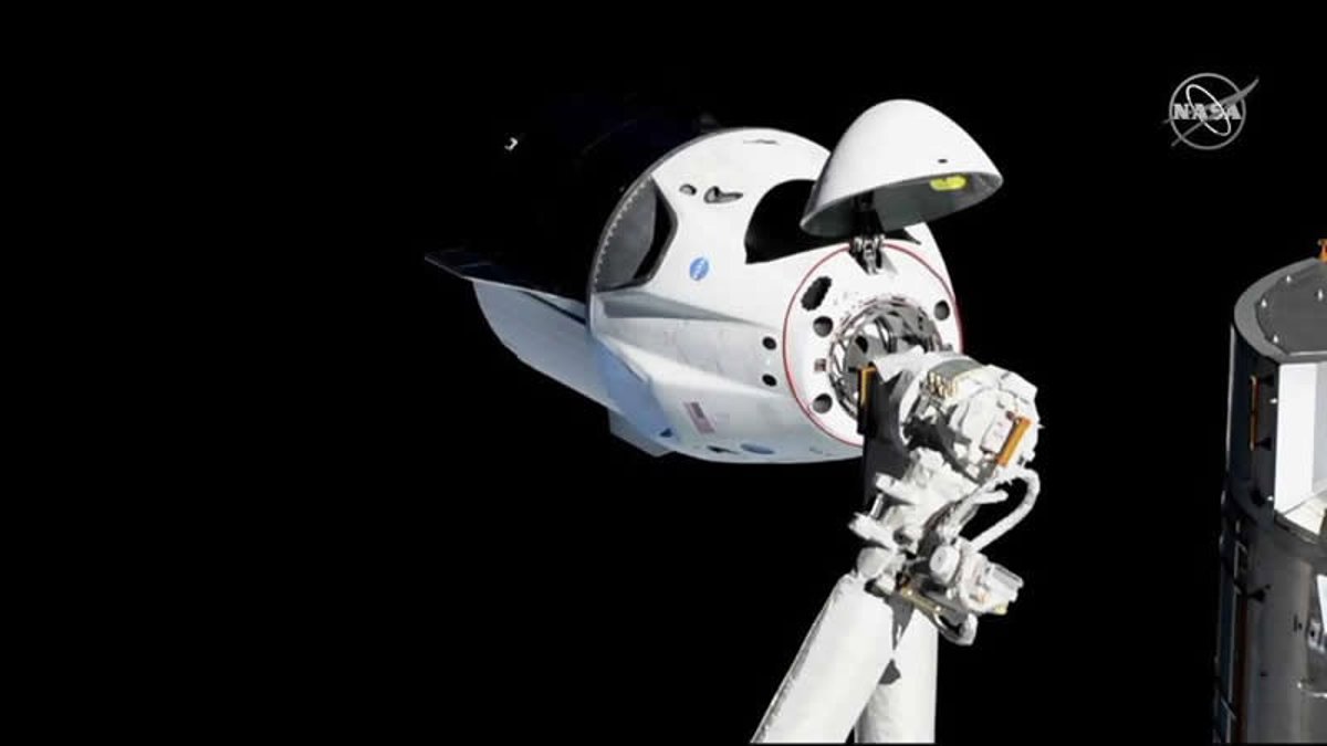 Los miembros de la tripulación abrieron la escotilla después de las comprobaciones de fugas estándar y la presurización. Además de llevar a Ripley, un dispositivo de prueba antropomórfico equipado con sensores para proporcionar datos sobre los posibles efectos en los futuros astronautas que viajarán en Dragon, la NASA también envió unos 200 kilos de suministros y equipo para la tripulación a la estación espacial, incluidas bolsas que contienen más de 1.000 paquetes de comida y bebida para la tripulación.