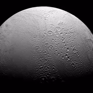 La mayoría de los cuerpos del sistema solar que carecen de una atmósfera están fuertemente crateralizados como la región norte de Encelado, que tiene 504 kilómetros de diámetro.