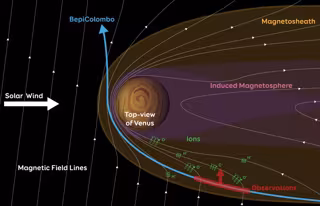 El 10 de agosto de 2021, BepiColombo pasó por Venus para reducir la velocidad y ajustar el rumbo hacia su destino final, Mercurio. La nave espacial descendió en picado por la larga cola de la vaina magnética de Venus y emergió por la nariz de las regiones magnéticas más cercanas al sol. Durante un período de observaciones de 90 minutos, los instrumentos de BepiColombo midieron el número y la masa de partículas cargadas que encontraron, capturando información sobre los procesos químicos y físicos que impulsan el escape atmosférico en el flanco de la funda magnética.