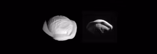 Estas dos imágenes de la nave espacial Cassini de la NASA muestran cómo la perspectiva de la nave espacial cambió a medida que pasaba a 24.300 kilómetros de la extraña luna Pan de Saturno el 7 de marzo.