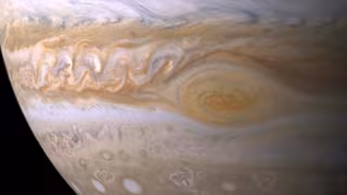 La Gran Mancha Roja de Júpiter (GRS, por sus siglas en inglés) es una de las maravillas de nuestro sistema solar. Descubierta tras años desde la introducción de la astronomía telescópica en el siglo XVII por Galileo, su patrón de remolino de gases de colores a menudo se llama "huracán perpetuo". La GRS ha variado en tamaño y color a lo largo de los siglos, extendiéndose por una distancia igual a tres diámetros terrestres, y tiene vientos que tardan seis días en completar una vuelta. Júpiter gira muy rápidamente, completando una vuelta en sólo diez horas.