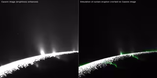 Los chorros fantasma en imágenes simuladas producidas por los científicos se alinean muy bien con algunas de las características en las imágenes de la Cassini que parecen ser las columnas de aerosol. La correspondencia entre los datos de simulación y de la nave espacial sugiere que gran parte de la estructura de chorros es una ilusión, según los investigadores.