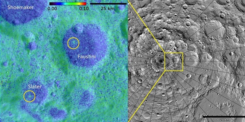 Los científicos determinaron que las áreas alrededor de los dos cráteres eran más brillantes y más ásperos que el paisaje circundante. El equipo calcula la edad de un cráter --denominado Faustini-- en unos 16 millones de años. Pero el áspero manto de eyección extendido del otro cráter --apodado Slater-- se había desvanecido, lo que demuestra que este cráter debe ser de al menos 75 millones de años. Pero el tiempo habría cubierto por completo el manto de eyección de polvo esponjoso dentro de 420 millones de años, proporcionando un límite superior a su edad.