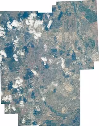 Pesquet pidió que se creara un mosaico con estos primeros planos de la ciudad, para así poder mostrarla con todo lujo de detalle. Como la estación vuela a unos 400 kilómetros de altura, el astronauta empleó la mayor lente disponible a bordo, de 1.150 mm.