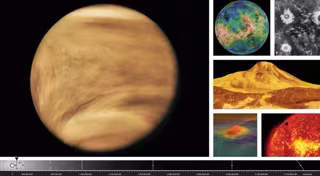 Esta litografía presenta imágenes de Venus de las misiones Pioneer Venus, Magellan, TRACE y Venus Express. - NASA