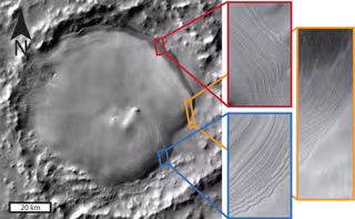 Depósitos de capas de hielo en cráteres esparcidos por el hemisferio sur de Marte brindan información sobre cómo la orientación del planeta controló su clima en los últimos 4 millones de años.