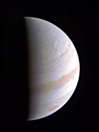 Aunque los resultados de los instrumentos se darán a conocer paulatinamente, un puñado de imágenes de luz visible de la cámara JunoCam, serán publicadas en los próximos días. Esas imágenes incluirán los puntos de vista de resolución más alta de la atmósfera de Júpiter y el primer vistazo de los polos norte y sur de Júpiter. La foto de arriba es sólo un anticipo.