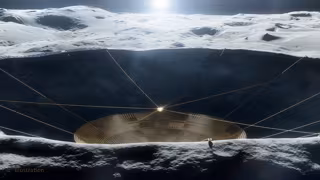 Ilustración de un radiotelescopio conceptual dentro de un cráter en la Luna. - VLADIMIR VUSTYANSKY