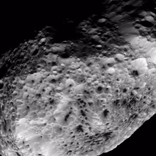 Con forma de patata, Hyperion es la más irregular de las lunas de Saturno y puede ser el remanente de una violenta colisión que destrozó un objeto más grande en pedazos. Los científicos de Cassini atribuyen la peculiar apariencia esponjosa de Hyperion al hecho de que tiene una densidad inusualmente baja para un objeto tan grande - alrededor de la mitad que la del agua.