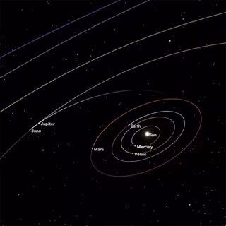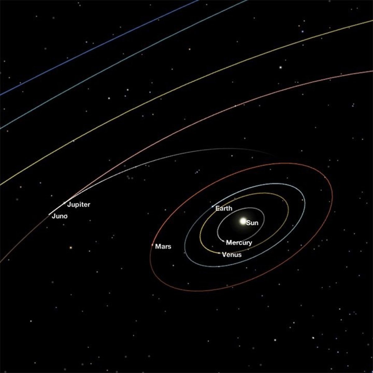 Juno, que está funcionando nominalmente y en perfecto estado, ha recorrido ya 2.750 millones de kilómetros, o 18.41 unidades astronómicas desde su lanzamiento, y tiene otros 77 millones de kilómetros antes de entrar en órbita alrededor de Júpiter. Lanzada en 2011, en 2013 se acercó a la Tierra para aprovechar el tirón gravitacional y acelerar su velocidad rumbo a Marte.