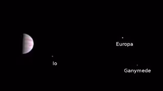 La imagen fue tomada el 10 de julio a las 05:30 GMT, cuando la nave estaba a 4,3 millones de kilómetros de Júpiter en el tramo de salida de su órbita inicial de captura de 53,5 días. La imagen en color muestra características atmosféricas de Júpiter, incluyendo la famosa Gran Mancha Roja, y tres de las lunas más grandes del planeta masivo - Io, Europa y Ganímedes -, de izquierda a derecha en la imagen.
