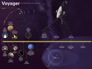 La Voyager 2 se lanzó el 20 de agosto de 1977, seguida rápidamente por la Voyager 1 el 5 de septiembre. Ambas sondas viajaron a Júpiter y Saturno, con la Voyager 1 moviéndose más rápido y alcanzándolas primero. Juntas, las sondas revelaron mucho sobre los dos planetas más grandes del sistema solar y sus lunas. La Voyager 2 también se convirtió en la primera y única nave espacial en volar cerca de Urano (en 1986) y Neptuno (en 1989), ofreciendo a la humanidad vistas extraordinarias e información sobre estos mundos distantes.