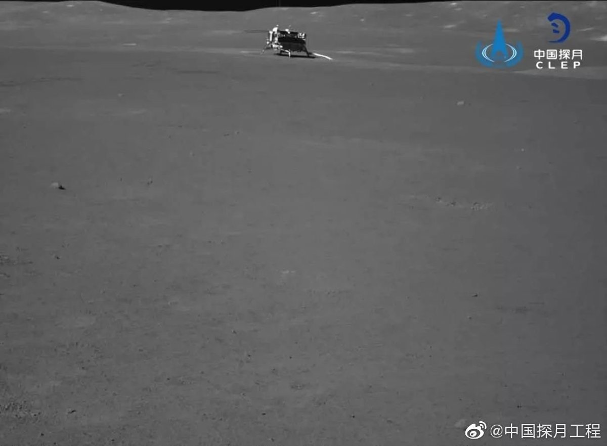 Hay una tercera imagen del CLEP, tomada en julio, que muestra al aterrizador Chang'e 4 en la lejanía, visto desde el rover, y que se muestra arriba.