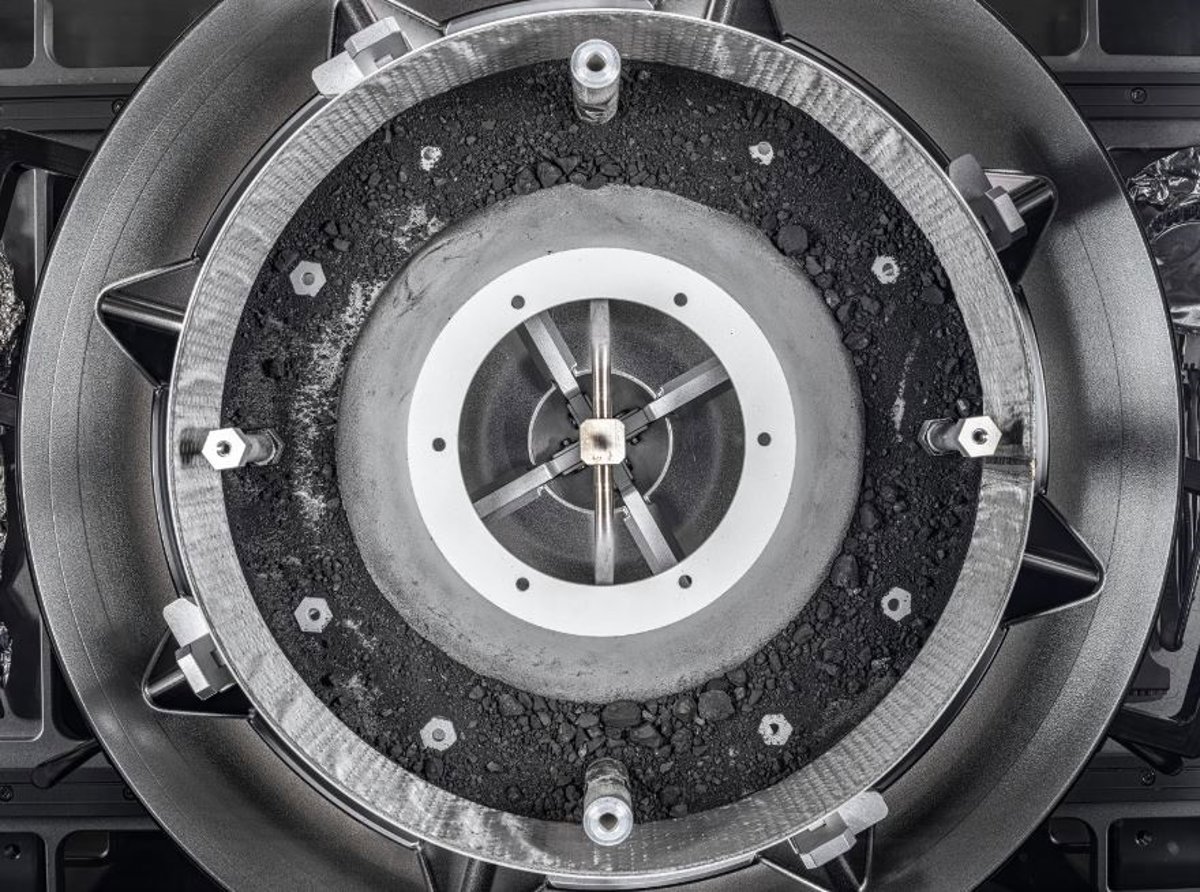 El equipo de astromateriales del Centro Johnson de la NASA ha completado el desmontaje del contenedor de la misión OSIRIS-REx para revelar el resto de la muestra del asteroide Bennu en su interior.
