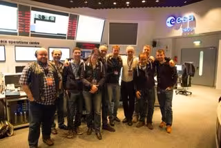 MADRID, 15 Nov. (EUROPA PRESS) - La sonda Philae de la ESA ha caido en 'modo inactivo' este sábado para un potencialmente largo silencio, tras agotarse sus baterías y no tener suficiente luz solar para recargar. En este modo, todos los instrumentos y la mayoría de los sistemas de a bordo se cierran. "Antes de caer en silencio, el aterrizador ha sido capaz de transmitir todos los datos científicos recogidos durante la Primera Secuencia de actividad cientifica", explicó Stephan Ulamec, responsable del aterrizaje, desde la sala de control de operaciones de la ESA en Darmastadt,Alemania. Philae consiguió perforar el suelo del cometa con su taladro y emplazó un termómetro en la superficie del cometa. "Esta màquina trabaja magníficamente en condiciones difíciles y podemos estar plenamente orgullosos del éxito científico increíble que Philae ha representado", añadió. El contacto se perdió a las 01.36 hora centroeuropea, no mucho antes de la pérdida de comunicación programada, que habría ocurrido de todas formas al caer la sonda Rosetta por debajo del horizonte. En la imagen, los controladores de la misión posan en una foto histórica poco después de perder contacto. A partir de ahora, no será posible ningún contacto, a menos que suficiente luz del Sol alcance los paneles solares para generar la energía suficiente para despertar al módulo. La posibilidad de que esto pueda suceder se vió impulsada horas antes, cuando los controladores de la misión enviaron comandos para girar el cuerpo principal del módulo de aterrizaje, ya que los paneles solares son fijos. Esto puede haber expuesto más área del panel a la luz solar. Los controladores seguirán enviando señales en las próximas horas para comprobar si la luz solar ha permitido al módulo recargar baterías. El orbitardor escuchará una señal , y lo seguirà haciendo cuando su òrbita permita la visibilidad de comunicaciòn en el futuro. En cualquier caso, la misión Rosetta continuará orbitando el cometa 67P en su viaje hacia el Sol.