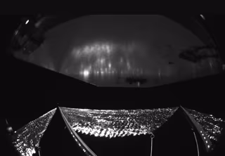 Actualmente orbitando la Tierra, la nave espacial se puede ver con sus velas reflectantes desplegadas desde el suelo. Como parte de la secuencia de despliegue planificada, la nave espacial comenzó a volar sin control de actitud justo antes del despliegue de los brazos. Como resultado, está dando tumbos lentamente como se esperaba.