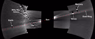 Imágenes combinadas del instrumento WISPR de Parker Solar Probe del anillo de polvo de Venus, que muestran a Mercurio, Venus, la Tierra y parte de la Vía Láctea. Las imágenes muestran que el anillo de polvo se alinea perfectamente con la órbita de Venus - STENBORG ET AL.
