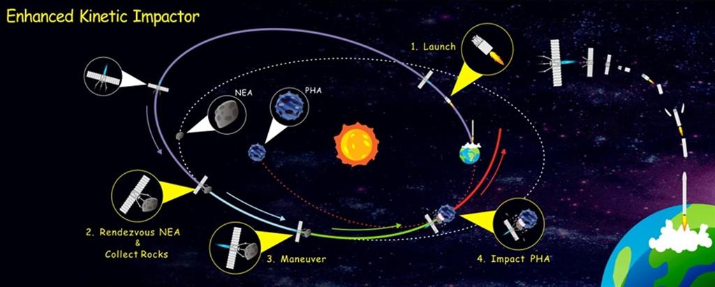 Expertos del Centro Nacional de Ciencias Espaciales (NSSC) de la Academia de Ciencias de China han propuesto un concepto de impacto cinético mejorado para alejar un asteroide peligroso de la órbita que cruza el camino de la Tierra al golpearlo con rocas espaciales.
