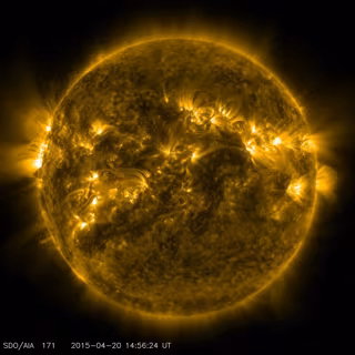 Esta imagen tomada el 20 de abril por el Observatorio de Dinámica Solar (SDO) de la NASA, muestra un patrón complicado de regiones brillantes y estirados filamentos en la parte delantera del sol.