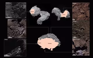 "La superficie oscura y relativamente homogénea del núcleo del cometa 67P sólo se ve interrumpida por algunos puntos brillantes, que se pueden explicar por la presencia de un delgado manto de polvo compuesto de mineral refractario y materia orgánica. Los puntos corresponden a los lugares en los que se retiró este manto de polvo, revelando un subsuelo rico en agua con hielo por debajo", ha explicado Holger Sierks, investigador principal en el Instituto Max Planck.