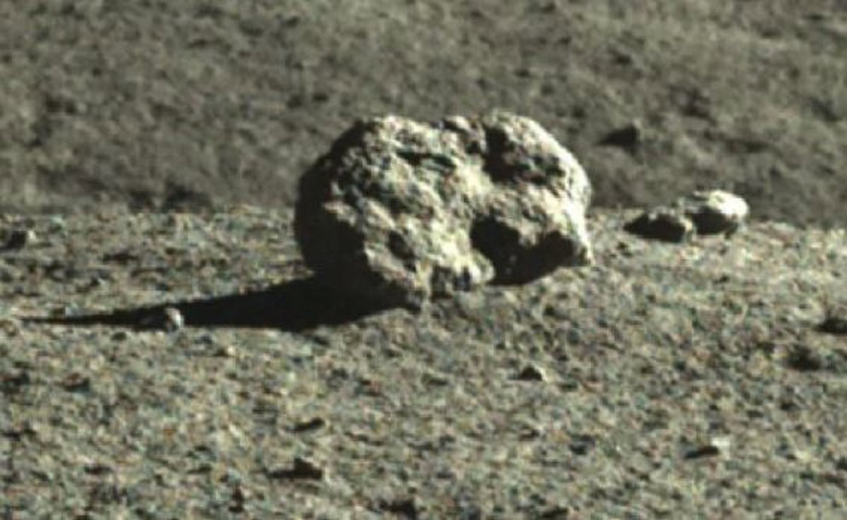 Las imágenes de la cámara panorámica en color revelan que el objeto en cuestión es una roca solitaria destacada en el suelo lunar.