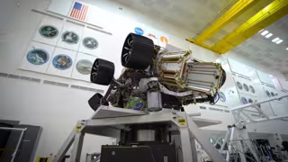 El rover de la misión Mars 2020 ha sido mostrado desde todos los ángulos aprovechando una prueba realizada para encontrar el centro de gravedad del vehículo, y perfeccionar su equilibrio.