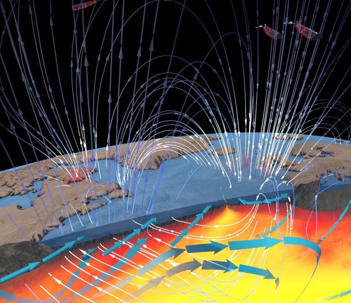 Un estudio que utiliza datos de la misión Swarm de la ESA sugiere que las débiles señales magnéticas creadas por las mareas pueden ayudar a determinar la distribución del magma bajo el lecho marino.
