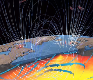 Swarm es una constelación de tres satélites que estudian el campo geomagnético de la Tierra. Se cree que este campo magnético que se extiende desde el interior de la Tierra hacia el espacio es producido en gran parte por un océano de hierro líquido en el núcleo exterior del planeta. Otras fuentes de magnetismo incluyen rocas magnetizadas en la corteza.