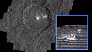 El estudio de De Sanctis encuentra que el mineral dominante de esta área brillante es el carbonato de sodio, un tipo de sal que se encuentra en la Tierra en ambientes hidrotermales. Este material parece haber llegado desde el interior de Ceres, ya que el impacto de un asteroide no podría haberlo dejado, informa la NASA. El afloramiento de este material sugiere que las temperaturas dentro de Ceres son más cálidas de lo que se creía anteriormente. El impacto de un asteroide en Ceres puede haber contribuido al alforamiento de este material desde abajo, pero los investigadores creen que un proceso interno juega un papel también.
