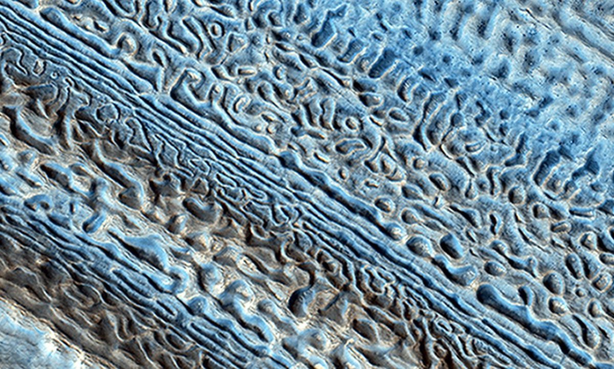 Algunas partes de la superficie de Marte recuerdan a los pliegues y crestas del cerebro humano o a los corales oceánicos. Científicos los han usado para descifrar la historia climática reciente de Marte.