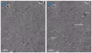 En la imagen de 'antes y después' se ven dos puntos brillantes en la esquina superior derecha. La más grande es la plataforma de aterrizaje y la más pequeña es el rover Zhurong.