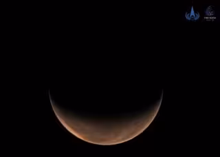 En la imagen, Marte tiene una forma de "media luna" con una textura de superficie clara. La sonda Tianwen-1 voló a una distancia de 11.000 kilómetros de Marte y utilizó una cámara de resolución media para tomar una vista panorámica de Planeta rojo, informa la CNSA.