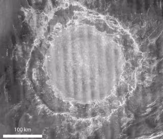 El cráter Mead, la cuenca de impacto más grande de Venus, está rodeado por dos anillos rocosos, que brindan información valiosa sobre la litosfera del planeta. - NASA
