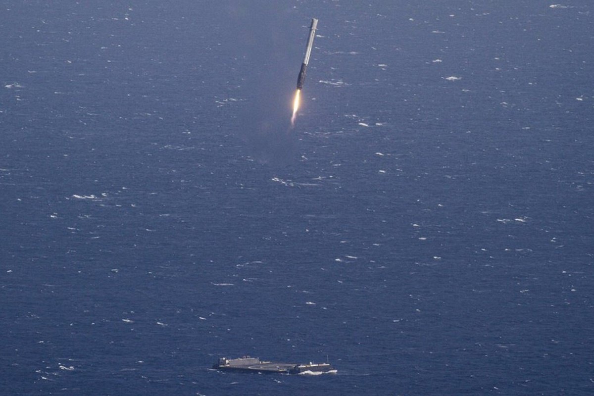 Minutos después de lanzar al espacio una nave de carga Dragon con suministros para la Estación Espacial Internacional, el pasado 8 de abril a las 20,43 GMT, la primera fase del cohete fue redirigida hacia una plataforma de aterrizaje sin tripulación emplazada en alta mar, mediante varios encendidos de motores de retorno.