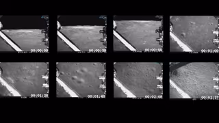 Las imágenes en blanco y negro de la agencia espacial china (CNSA) comienzan con una vista del paisaje lunar salpicado de cráteres frente a la oscuridad del espacio. Tras un minuto, la cámara gira hacia abajo. Decenas de pequeños cráteres en el piso del gigantesco cráter Von Karman se distinguen a medida que la nave espacial se dirige hacia la superficie.