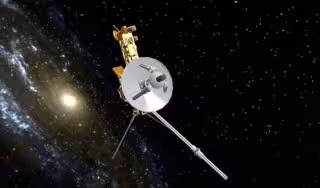 Lanzada en septiembre de 1977, la nave espacial Voyager 1 sobrevoló Júpiter en 1979 y luego Saturno a finales de 1980. Viajando a más de 50.000 kilómetros por hora, la Voyager 1 cruzó la heliopausa en agosto de 2012.