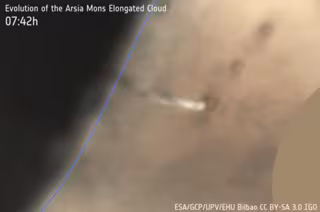 Cuando llega la primavera al sur de Marte, una nube de hielo de agua emerge cerca del volcán Arsia Mons de 20 kilómetros de altura, que se extiende rápidamente a lo largo de varios cientos de kilómetros antes de desaparecer en cuestión de horas.