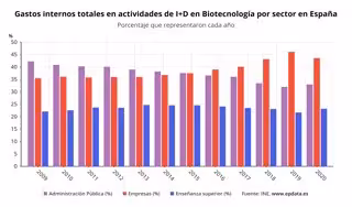 Por sectores de ejecución, el sector Empresas disminuyó un 4,6% su gasto interno, mientras que la Administración Pública lo aumentó un 4,0% y el sector Enseñanza Superior un 8,0%, según la Estadística sobre Uso de Biotecnología publicada por el Instituto Nacional de Estadística (INE).