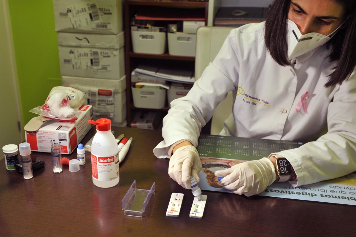 Archivo - Una farmacéutica de la Farmacia Portal Martínez Soto añade el reactivo a una placa en la que ha introducido la muestra de sangre que ha tomado para realizar un test de cribado del coronavirus en Barbadás, Ourense, Galicia (España) - Rosa Veiga - Europa Press - Archivo