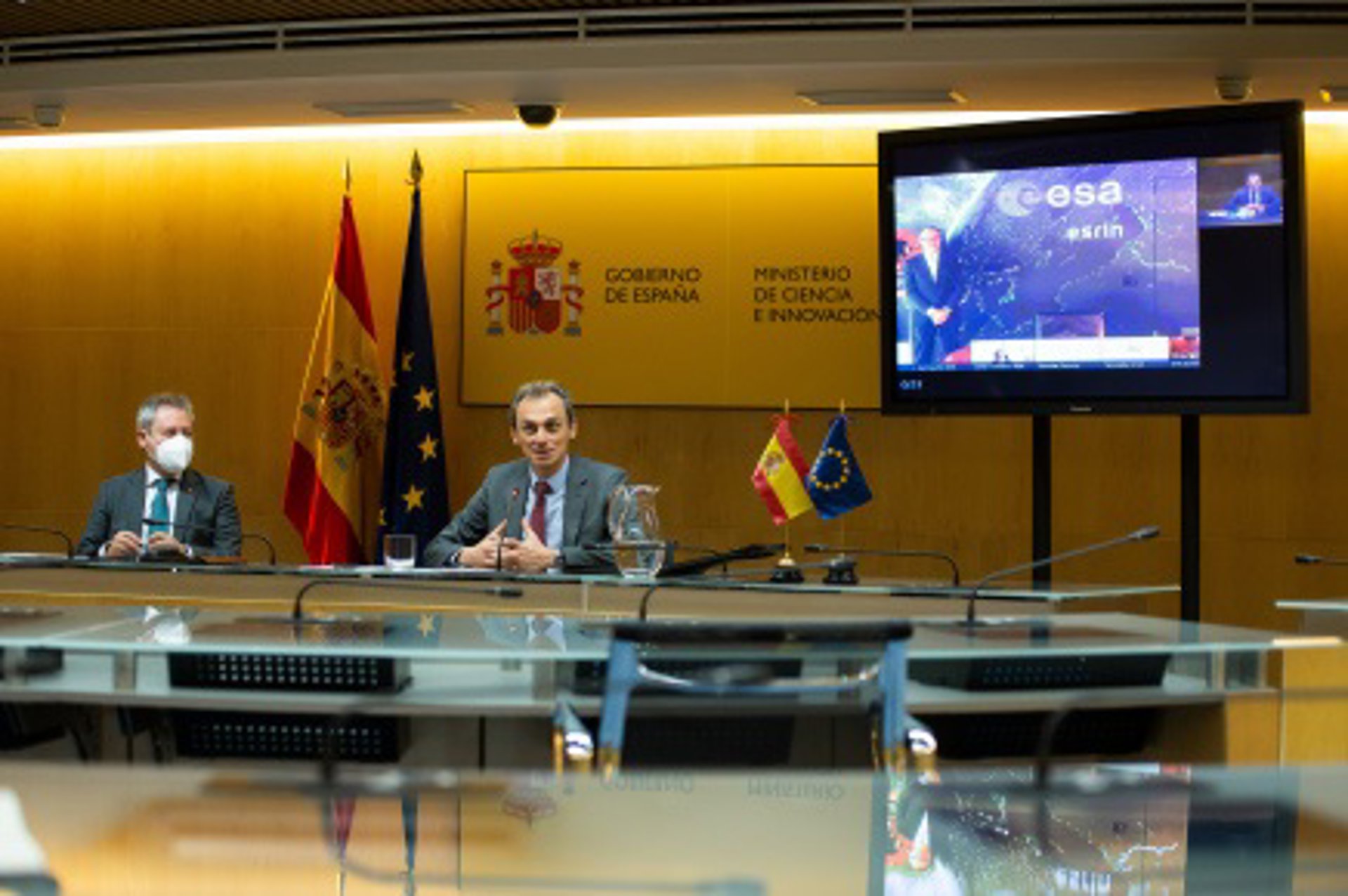 El ministro de Ciencia e Innovación, Pedro Duque, preside la firma de un contrato entre Airbus y la ESA para liderar el Programa Copernicus. - MINISTERIO DE CIENCIA E INNOVACION