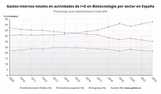 El gasto en I+D en biotecnología aumentó un 13% en 2022 y alcanzó los 2.565 millones. En las emprsas esta partida creció en 17,8% hasta los 1.224 (el 47,7% del total), según datos del Instituto de Estadística (INE).