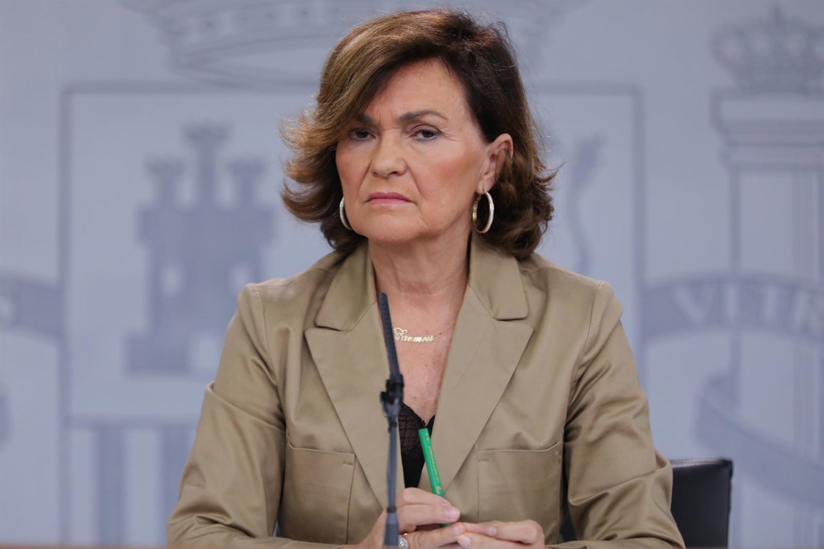 La vicepresidenta del Gobierno en funciones, Carmen Calvo, comparece en rueda de prensa tras la reunión del Consejo de Ministros, para informar sobre las últimas decisiones del Ejecutivo para exhumar en breve al dictador Francisco Franco del Valle de lo - Jesús Hellín - Europa Press